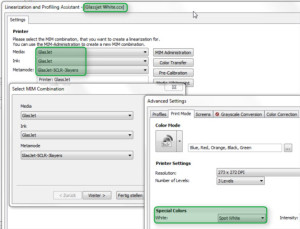 Zur Kontrolle wird bei Druckern, die Spezialfarben unterstützen, unter dem Linearisierungs-Drop-Down-Menü die aktuell zugewiesene SFL angezeigt.
