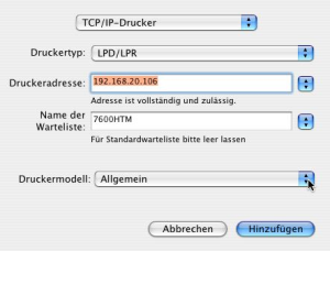 5. Erstellung eines lokalen virtuellen Druckers unter Mac OS X: