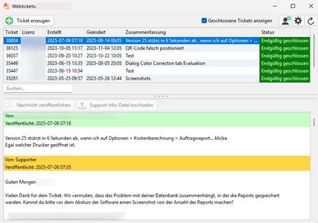 Nicht jeder Report dreht sich um Druckdaten: Ein weiterer Bereich ist das Fehlermanagement. Die sogenannten „Webtickets“, die bei ColorGATE eingereicht werden, sind Berichte über Fehler in der Software.