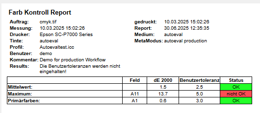Ausgabe und Handling von Farb-Kontrollreports