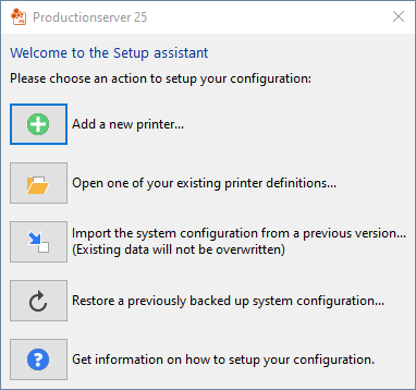 If you are going to use version 25 on the same computer as your current version, we recommend importing the system configuration of the previous version directly into version 25 using the Setup assistant. This contains an import function that allows you to quickly and easily transfer the system configuration from the previous version to V25. This ensures that all your usual settings, profiles, and printer definitions will be directly available in the new software version. You can find out how to use the import function in the Setup assistant in this section.