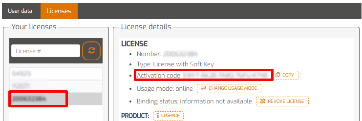 You can find the activation code on the ColorGATE Service & Support Site in your user profile (in the menu under Account & Licenses) on the Licenses tab.