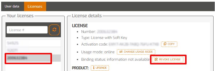 - On the left side of the tab, click on the number of the license you want to revoke.